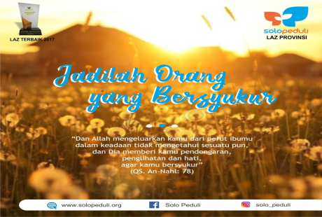 Read moreSOLOPEDULI.ORG- Kenikmatan hidup di dunia ini memang patut untuk disyukuri, entah bagaimanapun kenikmatan itu adalah anugerah dari Allah SWT. Maka, wajiblah kita untuk bersyukur atas nikmat Allah yang